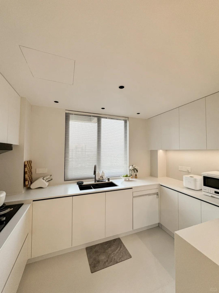 避坑指南: 要么直接做到顶,彻底杜绝缝隙。要么就吊柜上方加一道“封板”,与吊柜同色同材质,整体美观且无缝对接,让灰尘无处可逃。